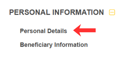 Click on the “+” symbol next to Personal Information, then click Personal Details.
